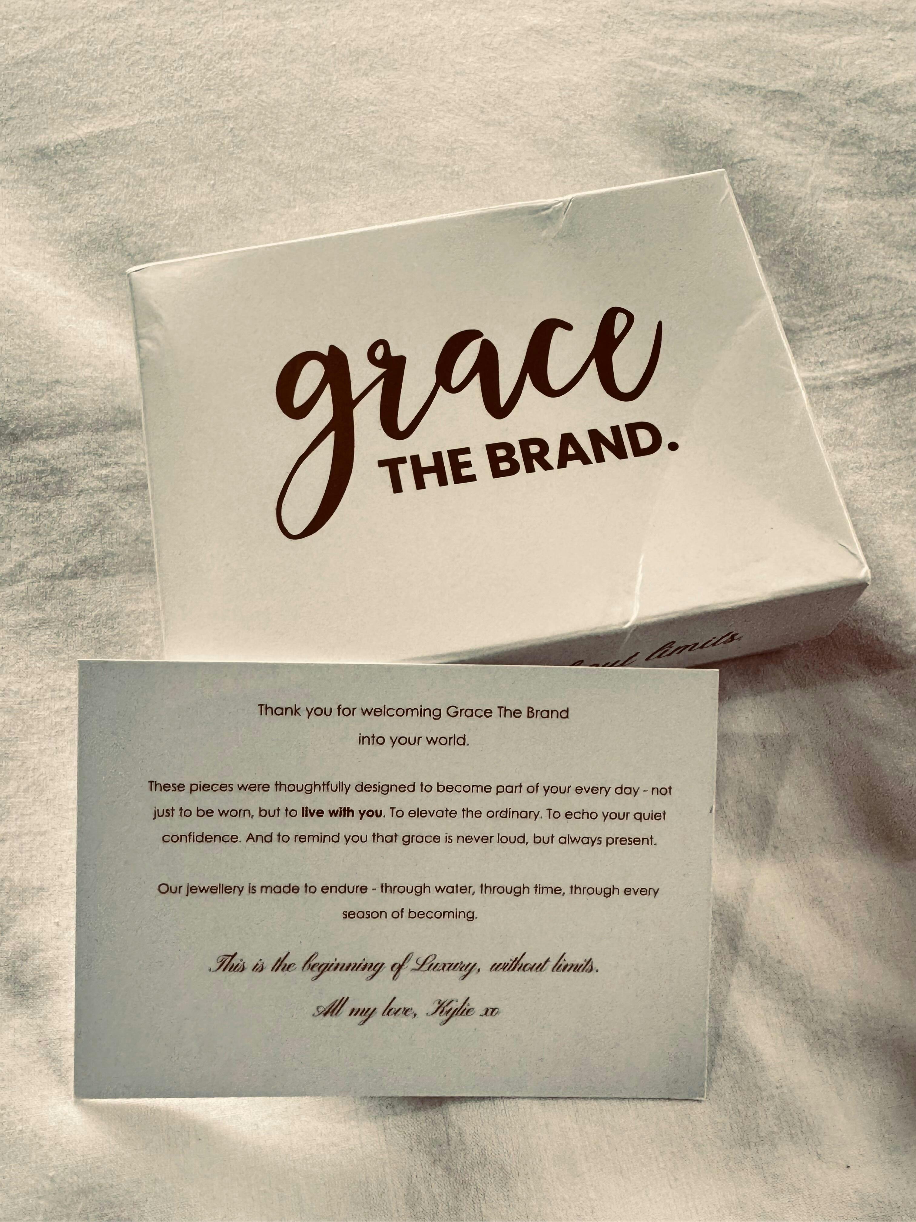 Each Grace The Brand order arrives ready to gift in our gift boxes with each individual jewellery item in it's own pvc storing pouch. You can upgrade further to include a personalised gift note aswell.