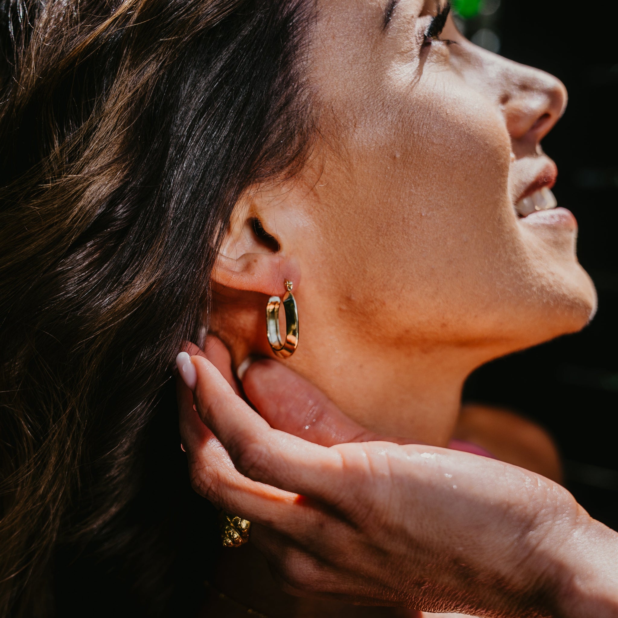 Experience effortless elegance with the SEVILLE GOLD HOOPS. These lightweight earrings are designed to stay radiant, thanks to their water and tarnish-proof finish. Hypoallergenic materials ensure comfort for sensitive skin, making them perfect for all-day wear.