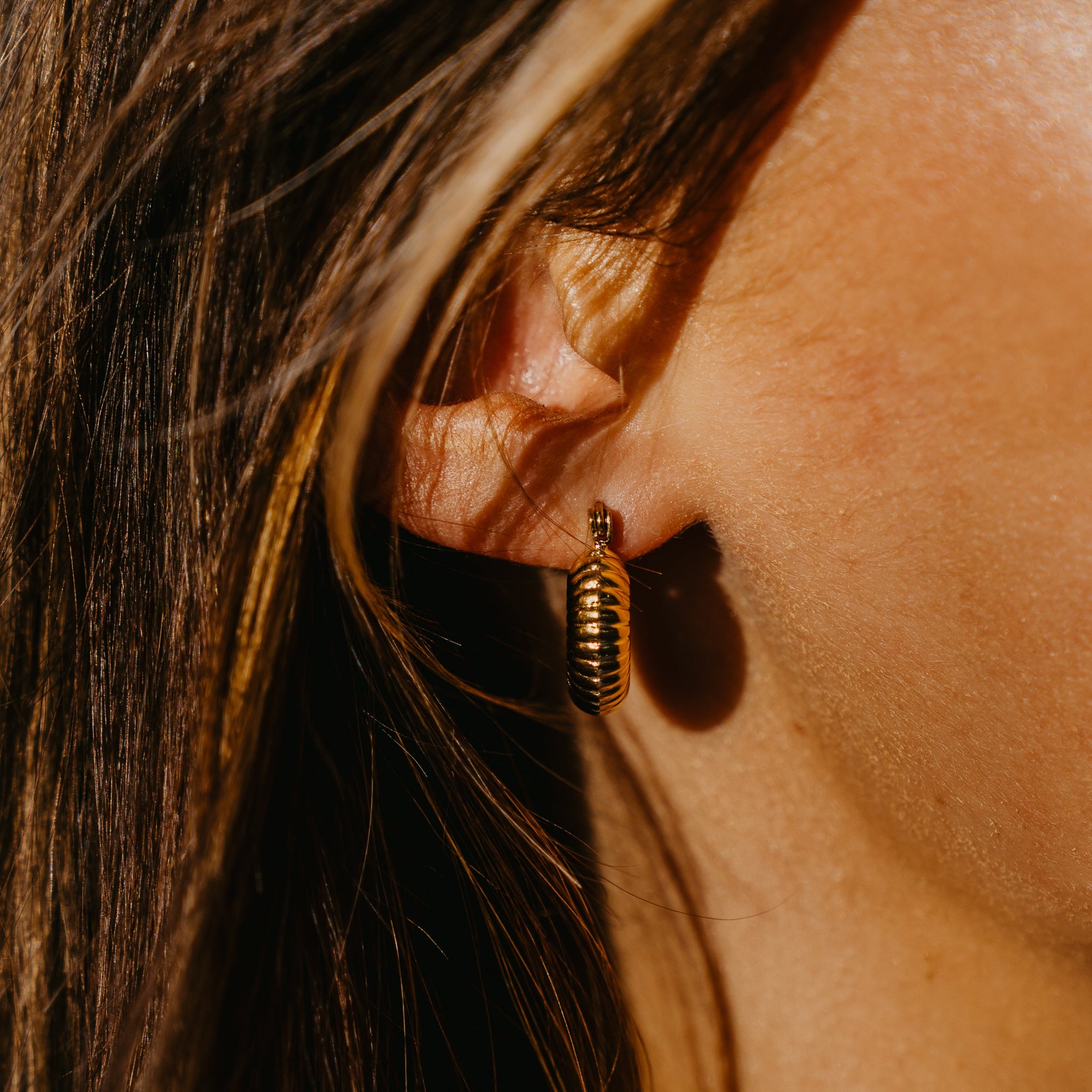 Timeless textured hoops that won't tarnish or irritate. Crafted from hypoallergenic material, these golden beauties are built to last through every occasion- no compromise on comfort or style.