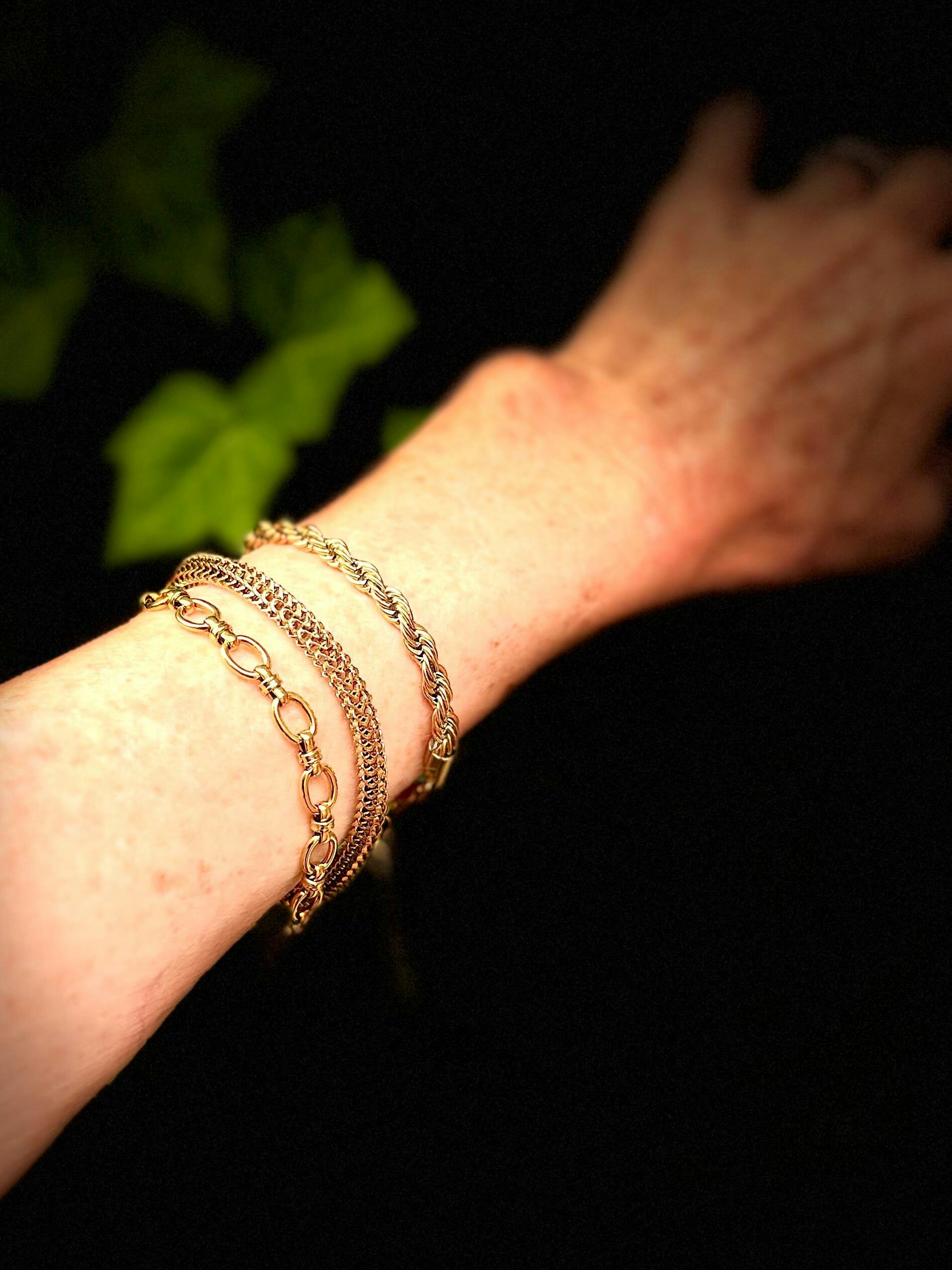 The NAOMI Rope Bracelet combines a stylish textured design with lightweight comfort, making it perfect for any look. Water and tarnish proof, this versatile piece easily transitions from casual days to elegant evenings, enhancing your outfit with effortless charm.