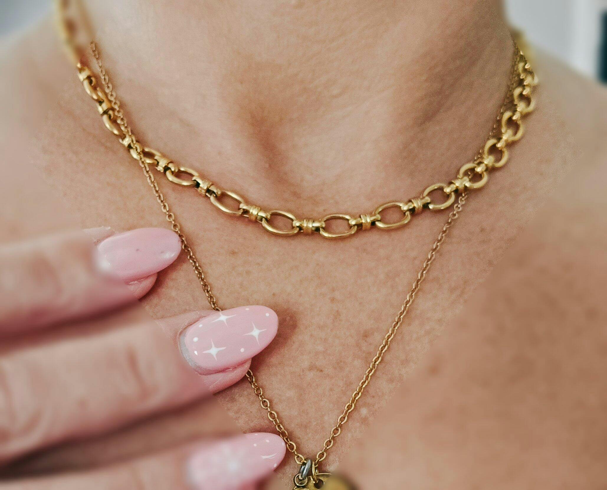 Experience the ultimate in luxury and durability with the Marise Necklace - now water and tarnish proof! Featuring a unique chain design that is sure to turn heads and make a statement.