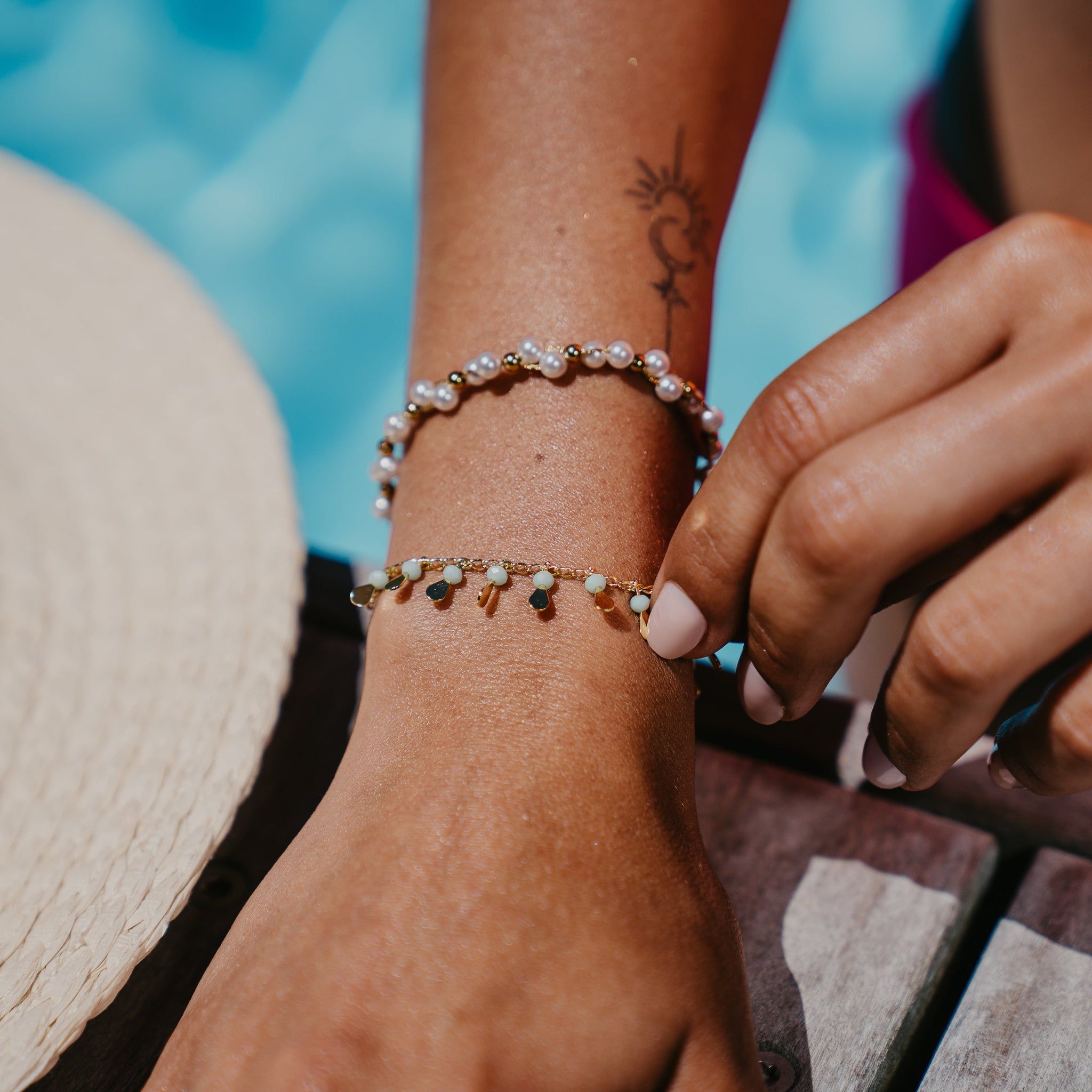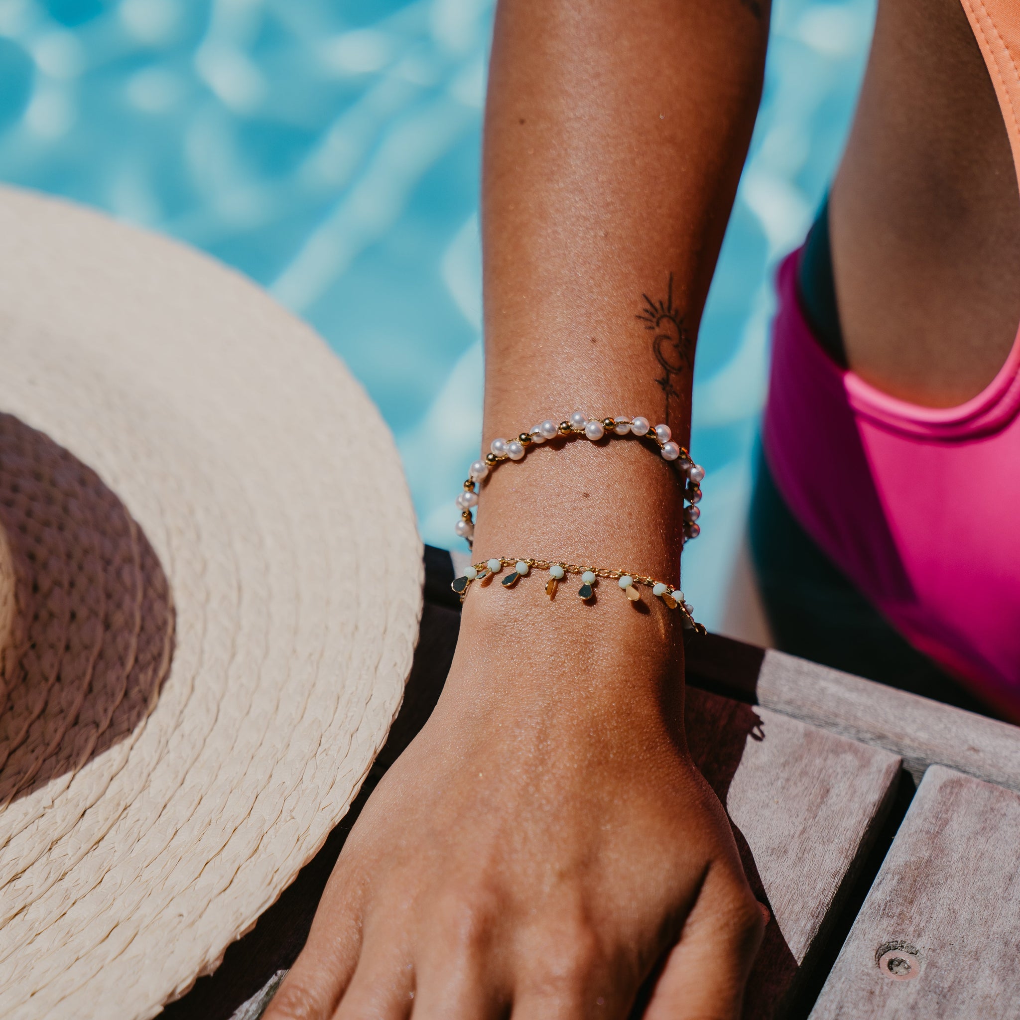Embrace summer vibes with the MARIGOLD BRACELET, featuring vibrant turquoise beads accented by elegant gold disc detailing. Crafted to be water and tarnish proof, this bracelet offers lasting color and shine, making it a perfect statement piece to brighten any warm-weather look.