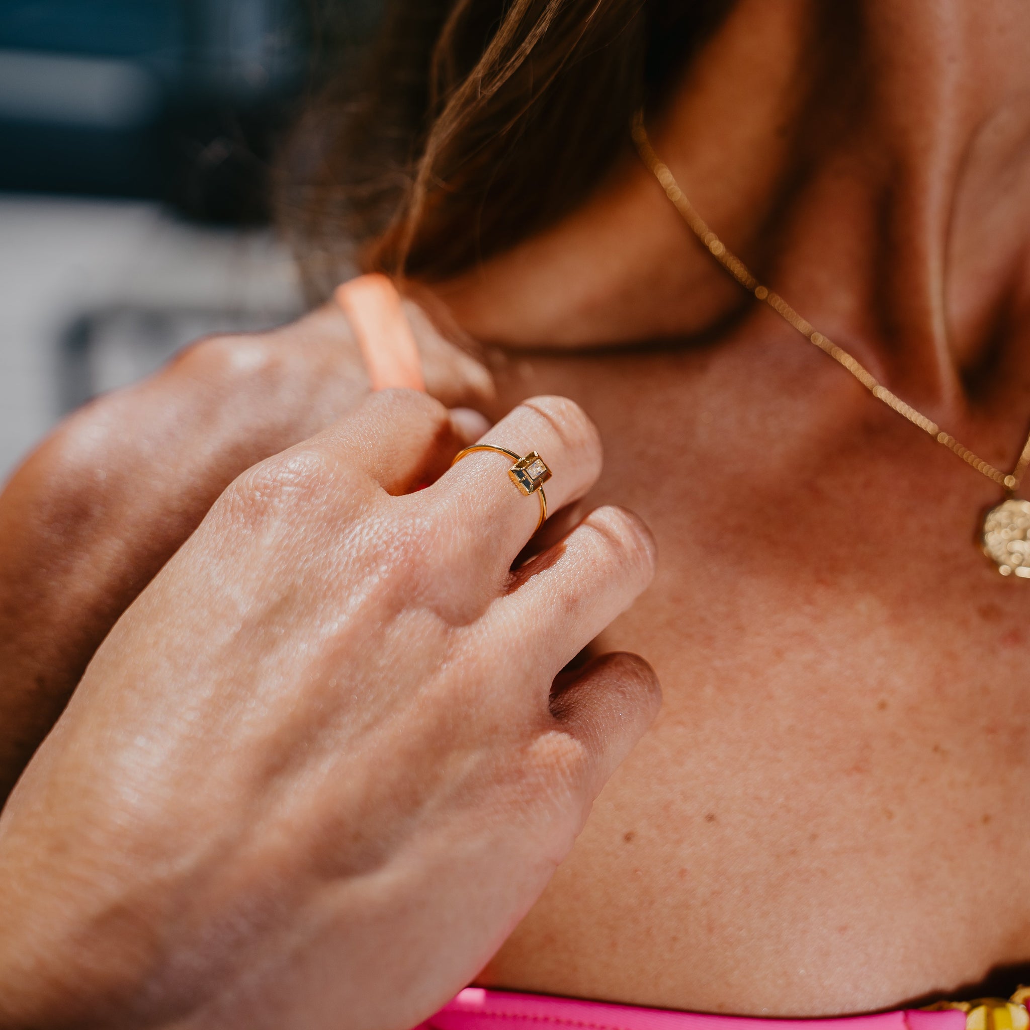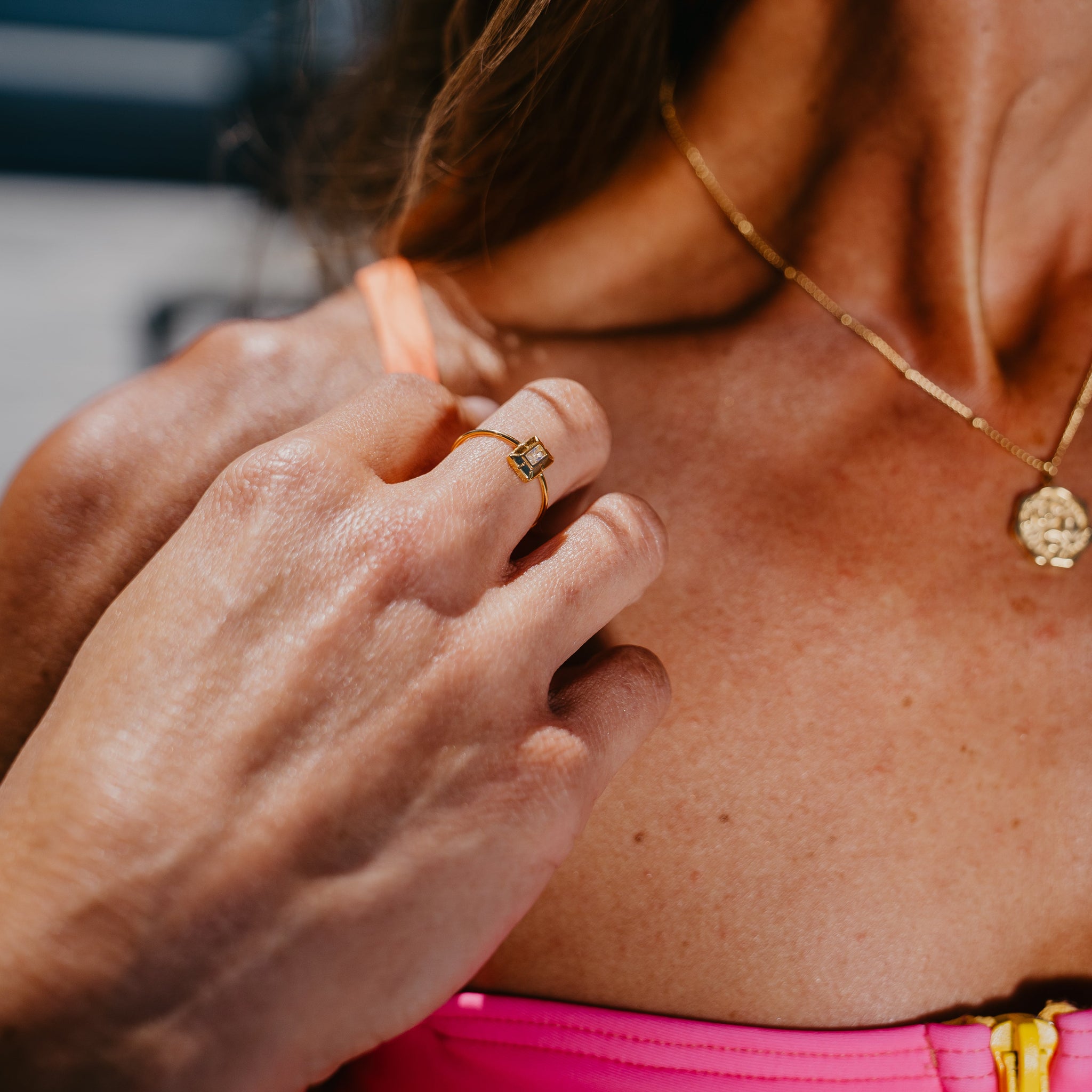 Shine bright this summer with the COASTAL CHARM RING, featuring a brilliant AAA-grade cubic zirconia stone that captures the essence of sunlit days. Water and tarnish proof, this durable ring ensures lasting sparkle and effortless elegance to elevate your warm-weather style.