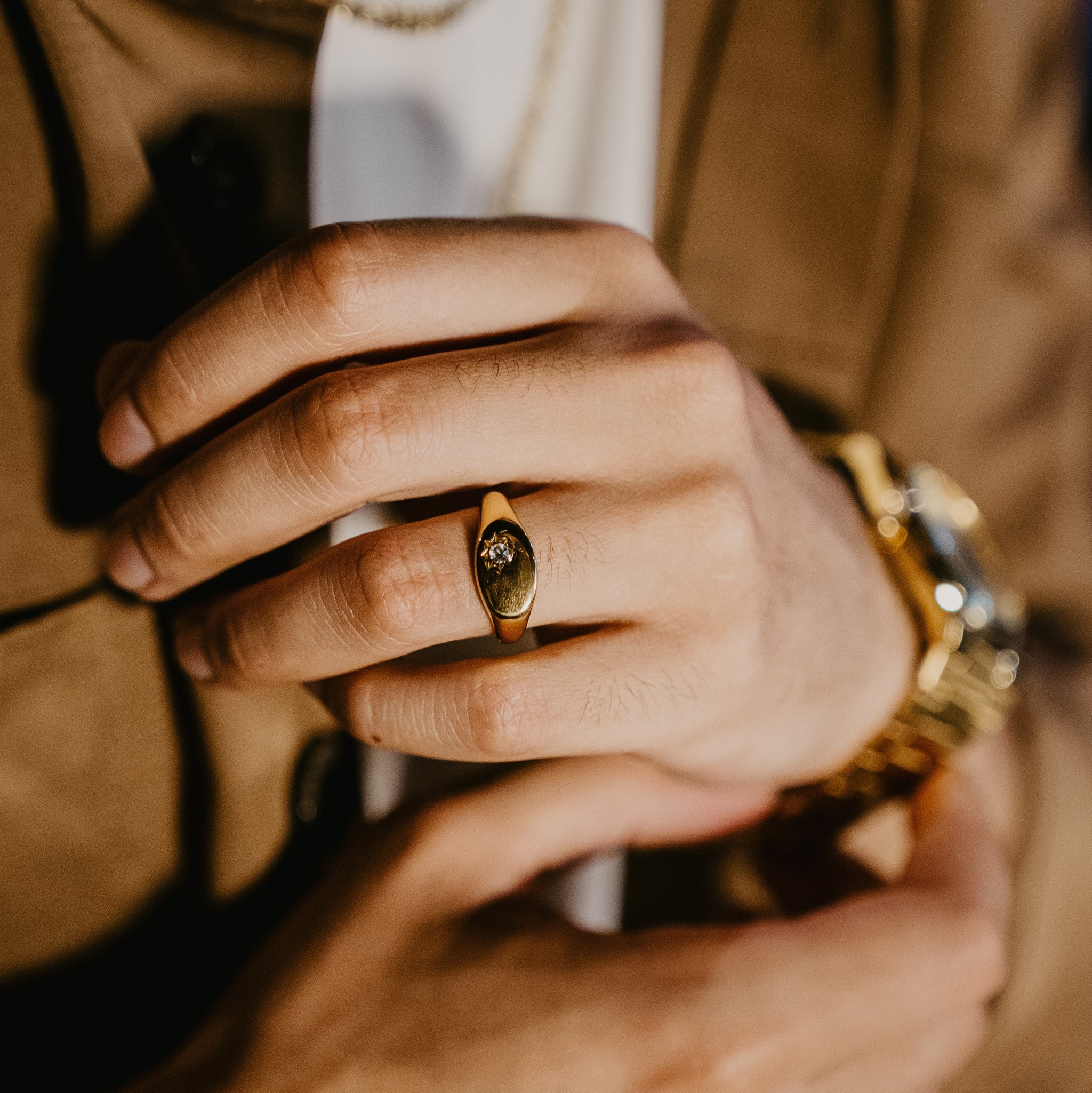 HOMME MENS SIGNET WITH CUBIC ZIRCONIA STONE