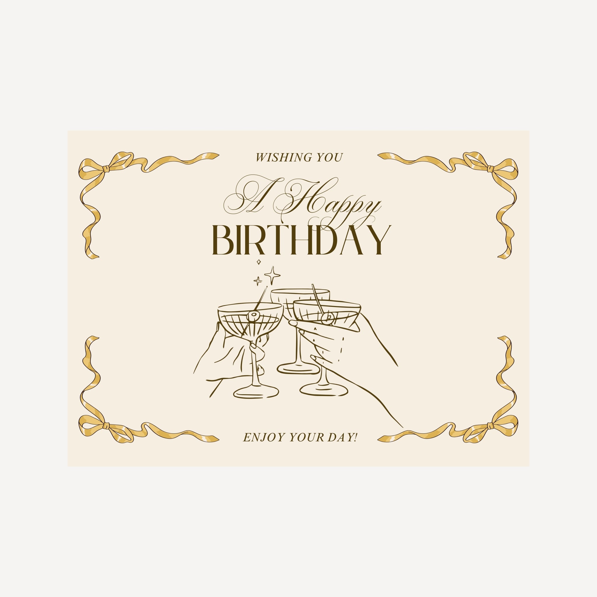 Celebrate special moments with this beautifully crafted birthday card that brings understated elegance to your gift-giving. Designed to nestle perfectly alongside your present, it offers a refined way to convey warm wishes and appreciation. The card's timeless aesthetic strikes a balance between contemporary style and classic sophistication, ensuring your heartfelt message resonates with genuine thoughtfulness. Transform an ordinary gift into something truly memorable with this polished finishing touch that speaks volumes about your care and attention to detail.