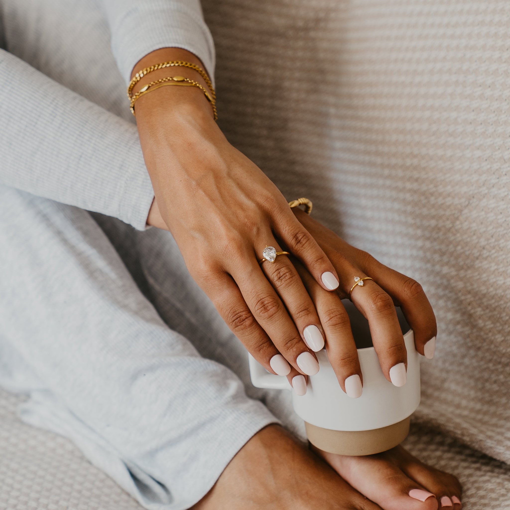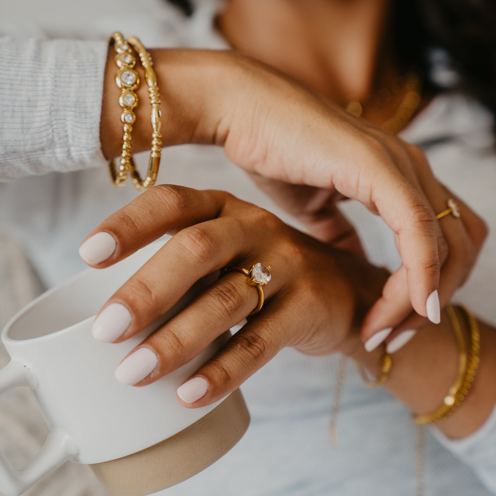 Our jewellery is 100% waterproof, tarnishproof, hypo-allergenic and designed to be worn 24/7. No extra care needed.