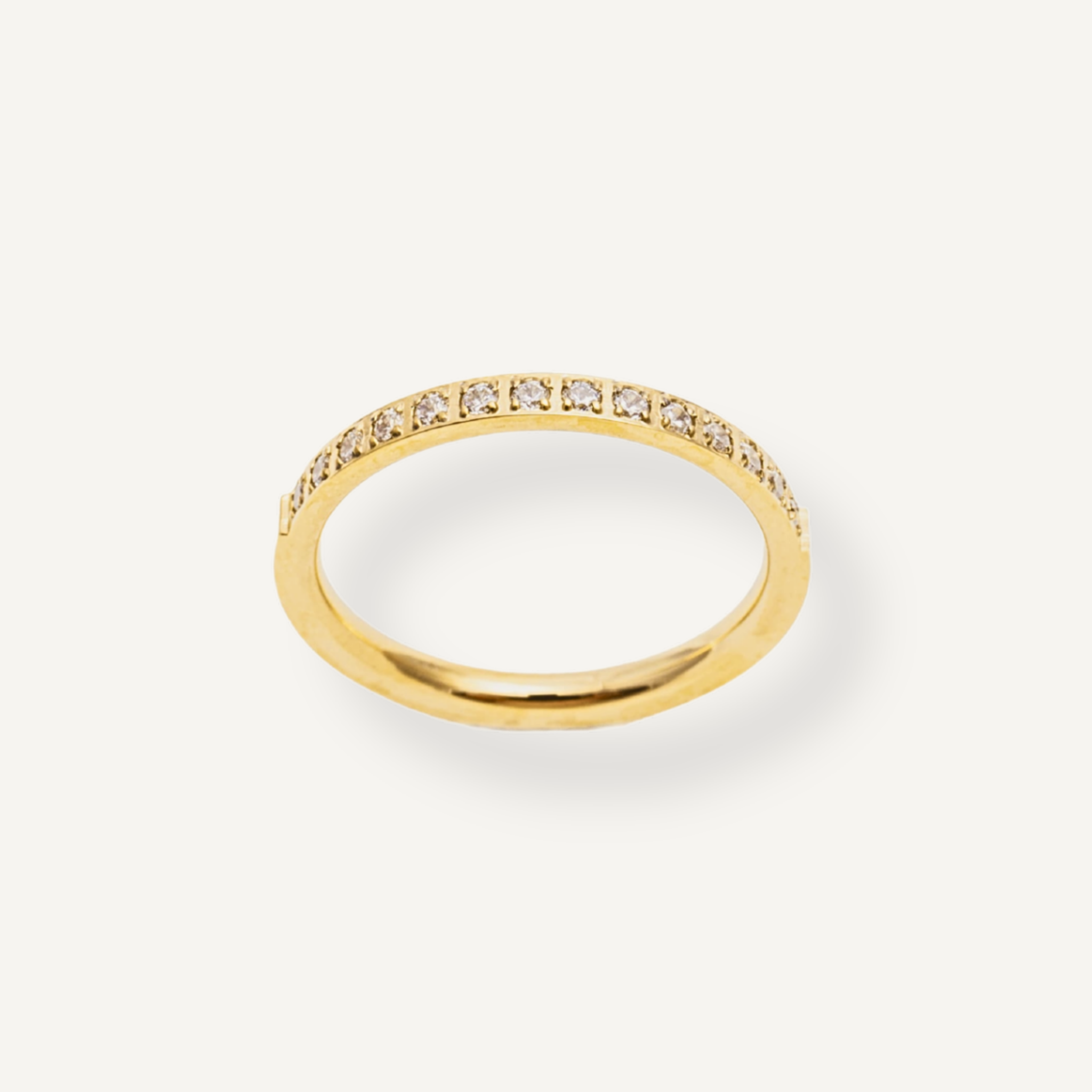 Elevate your style with the BECKI CZ BAND RING, featuring sparkling AAA-grade cubic zirconia stones that shine brilliantly without tarnishing. Water and tarnish-proof, this hypoallergenic ring offers lasting beauty and comfort, perfect for everyday wear or special occasions. Experience elegance that endures.