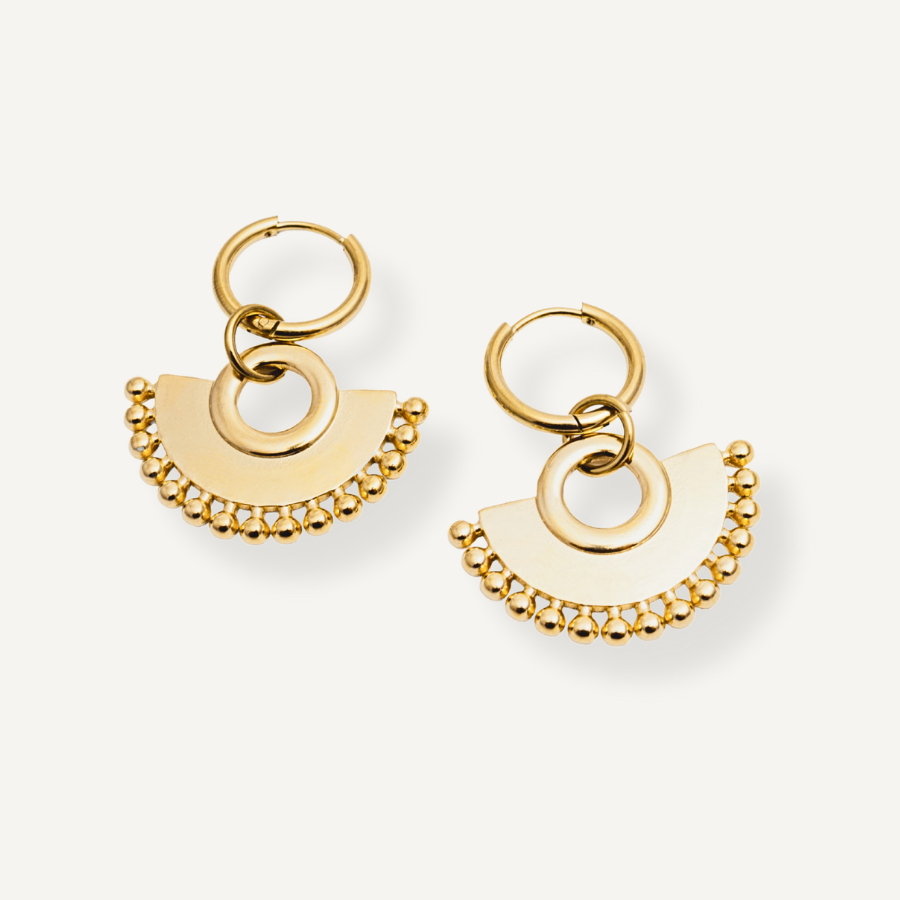 Add a touch of summer brilliance with the PALMA EARRINGS, featuring a stunning gold fan design that catches the light with every movement. Water and tarnish proof, hypoallergenic, and lightweight, these earrings offer lasting comfort and shine—perfect for elevating your warm-weather wardrobe.