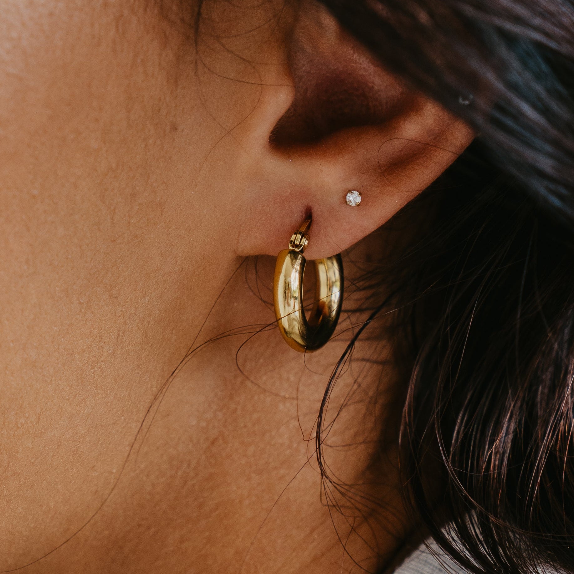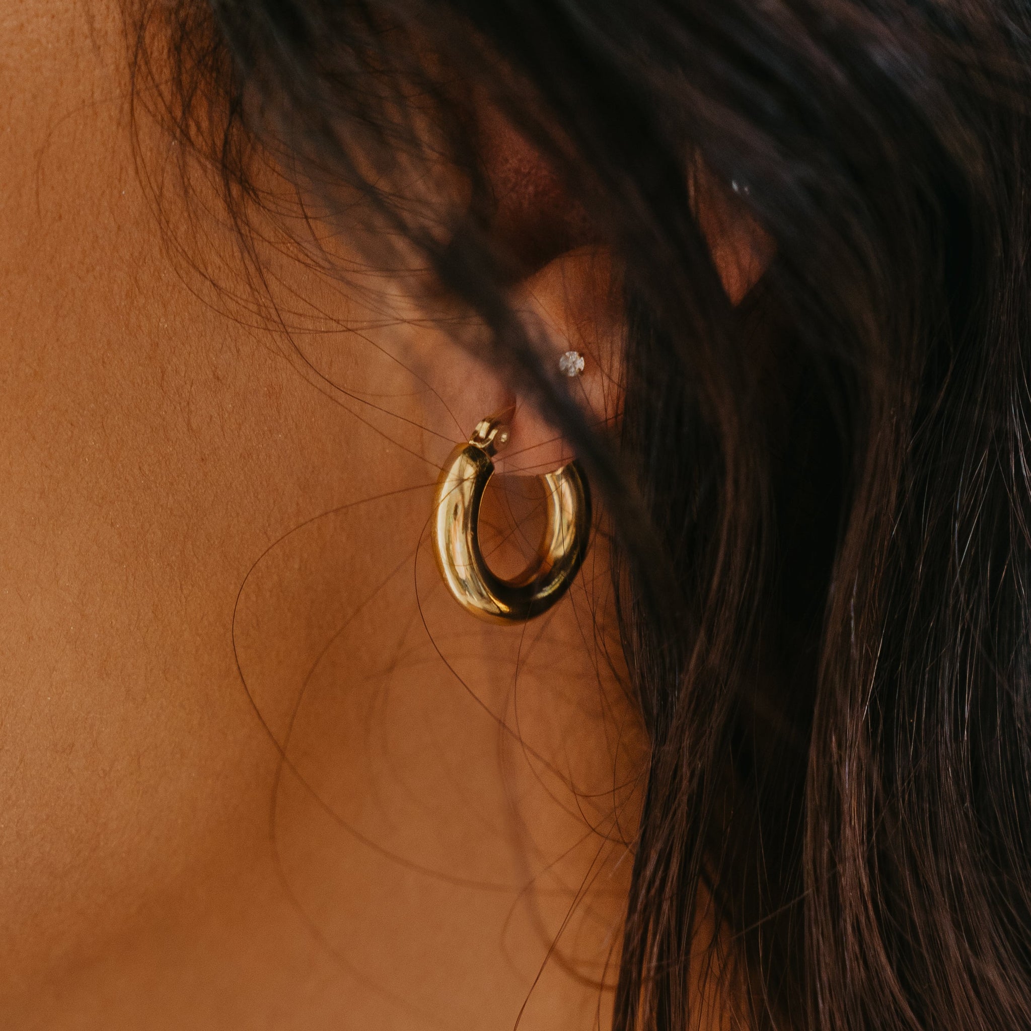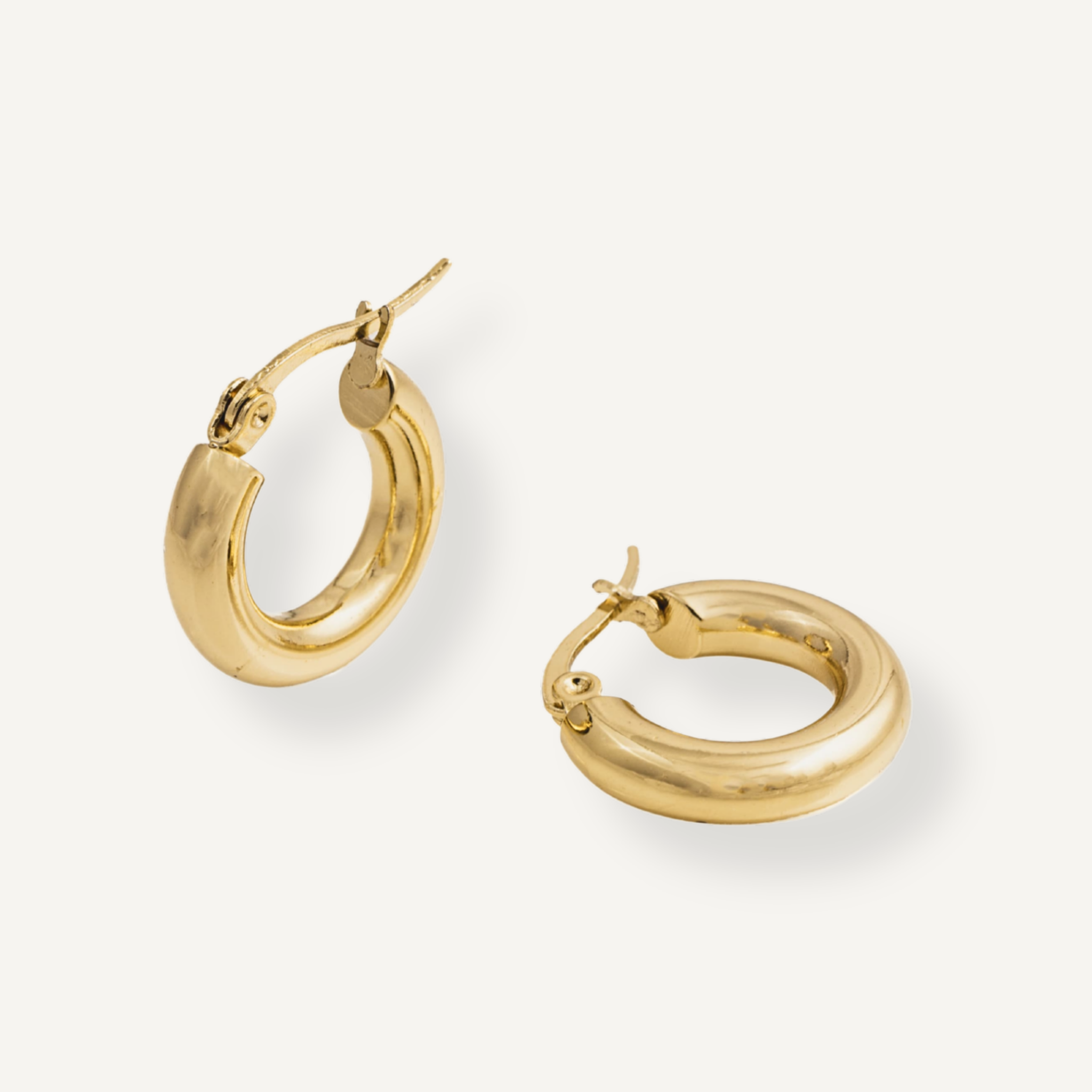 Elevate your jewellery collection with the IVY Hoops, crafted from hypoallergenic material ideal for sensitive skin. Tarnish-proof and water-resistant, these gold hoops maintain their lustre through everyday wear, making them a reliable addition to your accessories.